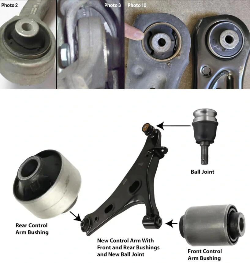 ဝတ်ဆင်မှုကို အတည်ပြုပြီးသည်နှင့် နှောင့်နှေးမှုမရှိသော ပေါက်များကို အစားထိုးပါ၊ ပိုကောင်းသည်မှာ စွမ်းဆောင်မှုအတွက် axle နှစ်ဖက်စလုံးတွင် ပိုကောင်းပါသည်။ အသစ်ထွက်ရှိထားသော ကားများတွင်၊ bushings များကို ဖိထားပြီး သီးခြားအစားထိုး၍မရသောကြောင့် control arm တစ်ခုလုံးကို လဲလှယ်ရမည်ဟု ဆိုလိုပါသည်။ ပုံမှန်မောင်းနှင်မှုကဲ့သို့ ဆိုင်းထိန်းစနစ်ဖြင့် ထုတ်လုပ်သူ torque specs များကို လိုက်နာမည့် အလုပ်အတွက် ကျွမ်းကျင်သော စက်ပြင်ဆရာကို ရှာပါ။