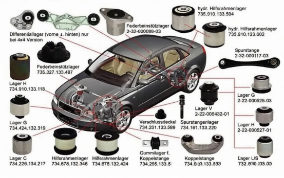 1. Suspension စနစ်-ဆိုင်းထိန်းစနစ်တွင်၊ ရော်ဘာအပေါက်များသည် အစိတ်အပိုင်းများကို ချိတ်ဆက်ရန်၊ တုန်လှုပ်မှုများကို စုပ်ယူရန်နှင့် တိကျသော ချိန်ညှိမှုကို ထိန်းသိမ်းရန်—ယာဉ်ကိုင်တွယ်မှုနှင့် စီးနင်းမှုနှစ်ရပ်စလုံးကို ပိုမိုကောင်းမွန်စေပါသည်။
