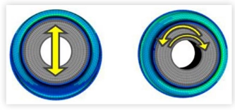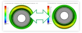 အောက်ဖော်ပြပါပုံသည် radial load အောက်တွင် သီးခြား suspension bushing တစ်ခု၏ finite element model နှင့် တွက်ချက်မှုရလဒ်များ၏ contour plot ကို ပြသထားသည်။