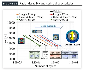 ရော်ဘာတုန်ခါမှု သီးခြားခွဲထုတ်ကိရိယာများအတွက်၊ စွမ်းဆောင်ရည်လိုအပ်ချက်များသည် radial load ခံနိုင်ရည်နှင့် torsional တာရှည်ခံမှုအကြား အကောင်းဆုံးချိန်ခွင်လျှာကိုရရှိရန် ရည်ရွယ်နိုင်သည်၊ သို့မဟုတ် torsional တာရှည်ခံမှုသည် အထူးအရေးကြီးပါသည်။ နွေဦးလက္ခဏာများနှင့်ပတ်သက်၍၊ ပိုပျော့ပျောင်းသောစပရိန်နှုန်းသည် မကြာခဏဆိုသလို ဆူညံသံ၊ တုန်ခါမှုနှင့် စီးနင်းသက်တောင့်သက်သာဖြစ်စေရန်အတွက် နှစ်လိုဖွယ်ဖြစ်သော်လည်း၊ တိကျမှုနှင့် မော်တော်ယာဉ်တည်ငြိမ်မှုရှိစေရန်အတွက် တစ်ခါတစ်ရံတွင် အနည်းငယ်မာကျောသောစပရိန်များသည် တစ်ခါတစ်ရံ လိုအပ်ပါသည်။ သတ်မှတ်ထားသော စွမ်းဆောင်ရည်ရည်ညွှန်းချက်များပါရှိသော အစိတ်အပိုင်းဒီဇိုင်းဒေတာကို ယာဉ်တစ်ခုလုံးစွမ်းဆောင်ရည်ပစ်မှတ်များနှင့်အညီ ရွေးချယ်ထားသောကြောင့်—နှင့် ဤအရည်အချင်းများကို အတိုင်းအတာဘောင်များနှင့် ပင်ကိုယ်အားဖြင့် ချိတ်ဆက်ထားသောကြောင့်—အစိတ်အပိုင်းအတိုင်းအတာများကို လိုချင်သောစွမ်းဆောင်ရည်မက်ထရစ်များမှအစပြု၍ ပြောင်းပြန်-အင်ဂျင်ဖြင့်ပြုလုပ်နိုင်သည်။ ဤချဉ်းကပ်နည်းသည် အသေးစိတ်ပုံများမရှိသည့်တိုင် ယာဉ်ဖွံ့ဖြိုးတိုးတက်မှု၏ ကနဦးအယူအဆအဆင့်တွင် စွမ်းဆောင်ရည်ပစ်မှတ်များကို ချမှတ်နိုင်စေပြီး မျှော်လင့်ထားသည့် စွမ်းဆောင်ရည်အပေါ်အခြေခံ၍ ရော်ဘာအစိတ်အပိုင်းများ၏ အနီးစပ်ဆုံး အဆင်အပြင်များကို ရရှိနိုင်မည်ဖြစ်သည်။ ဤစွမ်းဆောင်ရည်ကတ်တလောက်ကို အသုံးချခြင်းဖြင့်၊ စွမ်းဆောင်ရည်သတ်မှတ်ချက်များနှင့်အညီ အစကတည်းက အစိတ်အပိုင်းအတိုင်းအတာများကို ဆုံးဖြတ်နိုင်သည်- ထပ်တလဲလဲ FEM ခွဲခြမ်းစိတ်ဖြာမှုများ လိုအပ်မှုကို ဖယ်ရှားခြင်း၊ အသေးစိတ်ဖွံ့ဖြိုးတိုးတက်မှုအဆင့်များအတွင်း ဒီဇိုင်းပြန်လုပ်ခြင်းနှင့် ပြန်လည်လုပ်ဆောင်ခြင်းတို့ကို ရှောင်ကြဉ်ခြင်းနှင့် တိကျမှုမြင့်မားသော အစီအစဥ်ကို လျင်မြန်စွာအကောင်အထည်ဖော်ရန် လွယ်ကူစေခြင်း။