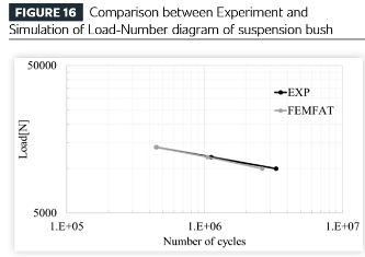 ထို့နောက် အထက်ဖော်ပြပါ တည်ဆောက်ပုံဆိုင်ရာ ခွဲခြမ်းစိတ်ဖြာမှု၏ ရလဒ်များကို ဆော့ဖ်ဝဲ၏ ပင်ပန်းနွမ်းနယ်မှု ခွဲခြမ်းစိတ်ဖြာမှု မော်ဂျူးသို့ လွှဲပြောင်းပြီး (ဤကိစ္စတွင် Magna ECS မှ FEMFAT ဆော့ဖ်ဝဲကို အသုံးပြုသည်) နှင့် တာရှည်ခံမှုဆိုင်ရာ စမ်းသပ်မှုရလဒ်များနှင့် နှိုင်းယှဉ်ပါသည်။ စမ်းသပ်မှုနှင့် ခွဲခြမ်းစိတ်ဖြာမှုသည် ပင်ပန်းနွမ်းနယ်မှုဘဝနှင့် အက်ကွဲတည်နေရာနှစ်ခုလုံးတွင် အလွန်ကောင်းမွန်သော လိုက်လျောညီထွေရှိမှုကို ပြသသည်။