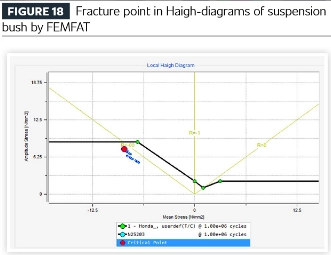 suspension bushing အတွက် ပင်ပန်းနွမ်းနယ်မှု သရုပ်ဖော်ခြင်း၏ Haigh ပုံကြမ်းသည် compressive stress ratios အောက်တွင် ကျိုးသွားခြင်းကို ဖော်ပြသည်။ ဆန့်နိုင်အားနှင့် တွန်းအားများကို ရော်ဘာပစ္စည်းတွင် ညီတူညီမျှ အသုံးချသော်လည်း၊ ခွဲခြမ်းစိတ်ဖြာမှုမှ ရှုံးနိမ့်မှုသည် နောက်ဆုံးတွင် ဖိသိပ်မှုအောက်တွင် စတင်လာသည်ကို ညွှန်ပြသည်။