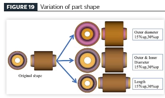 [ထိရောက်သောယာဉ်ထုတ်ကုန်ဒီဇိုင်းရေးဆွဲခြင်းလုပ်ငန်းစဉ်အား ပင်ပန်းနွမ်းနယ်မှု ခွဲခြမ်းစိတ်ဖြာခြင်းနည်းပညာဖြင့်] တုန်ခါမှု-ခွဲထုတ်သည့်ရော်ဘာအစိတ်အပိုင်းများအတွက် အဆိုပြုထားသော ပင်ပန်းနွမ်းနယ်မှုခွဲခြမ်းစိတ်ဖြာမှုနည်းပညာကို အသုံးပြုခြင်းဖြင့် ဂျီဩမေတြီကွဲလွဲမှု (ရော်ဘာထုထည်) နှင့် တာရှည်ခံမှုစွမ်းဆောင်ရည်ကြားဆက်စပ်မှုကို စုံစမ်းစစ်ဆေးရန် တူညီသောပစ္စည်းဖြင့်ပြုလုပ်ထားသော အစိတ်အပိုင်းများကို ပါရာမက်ထရီလေ့လာမှုတစ်ခု ပြုလုပ်ခဲ့သည်။ အစိတ်အပိုင်း ဂျီသြမေတြီသည် မူရင်းအပိုင်း ဒီဇိုင်းမှ ဆင်းသက်လာပြီး၊ မော်ဒယ်ပုံစံ ကွဲပြားမှုများ ပါဝင်သည်-