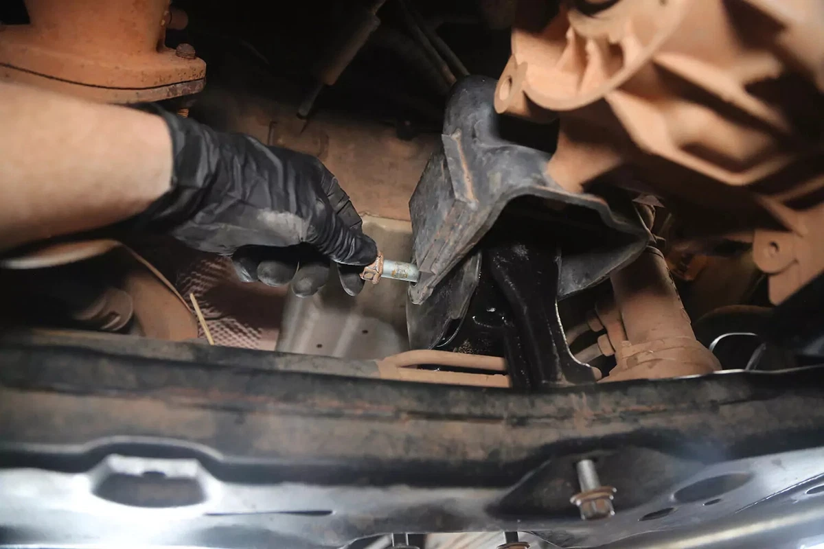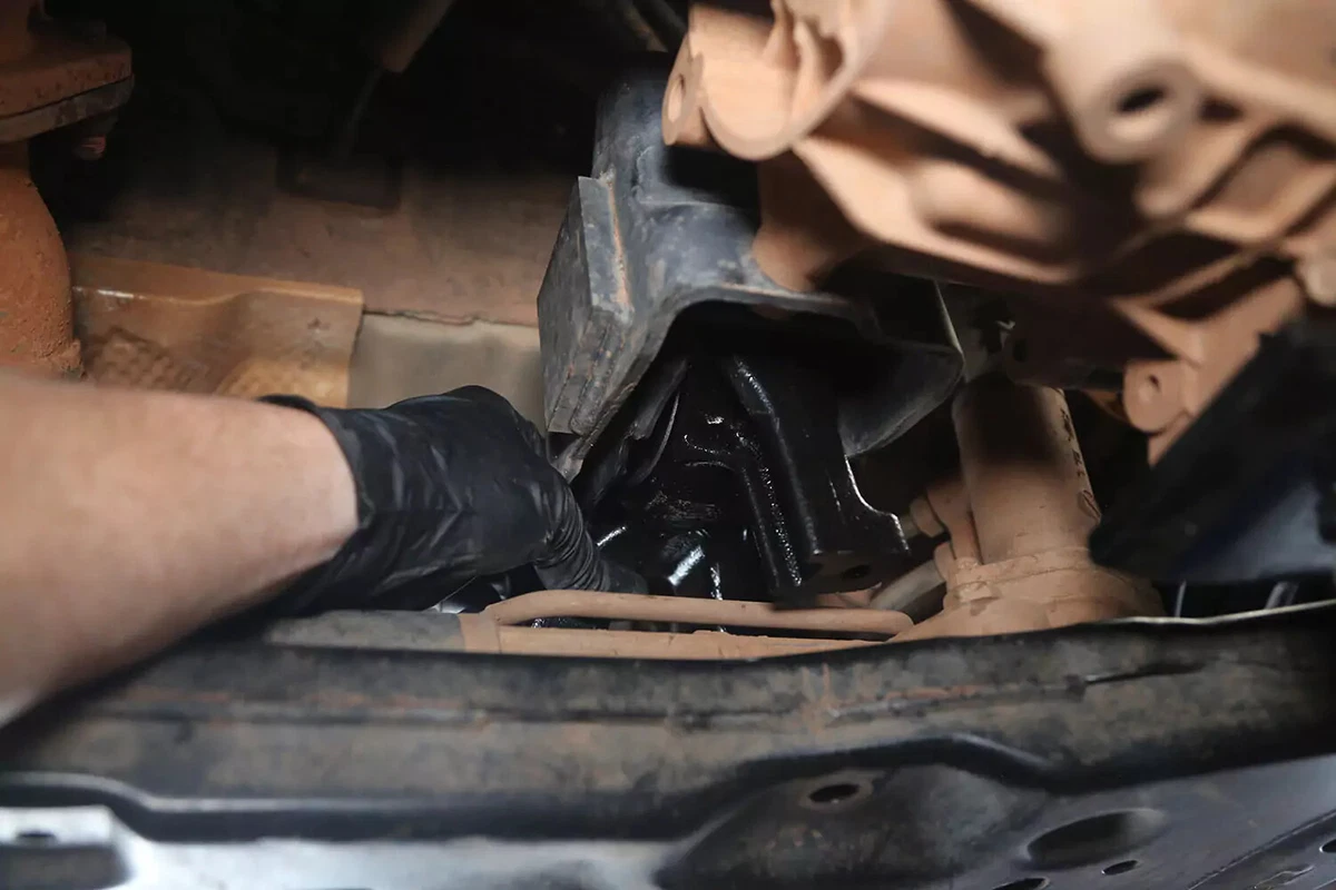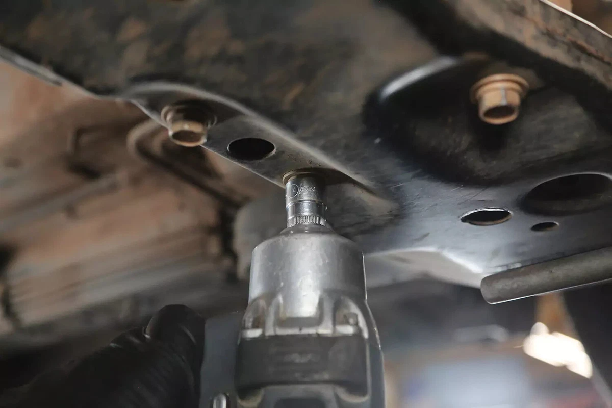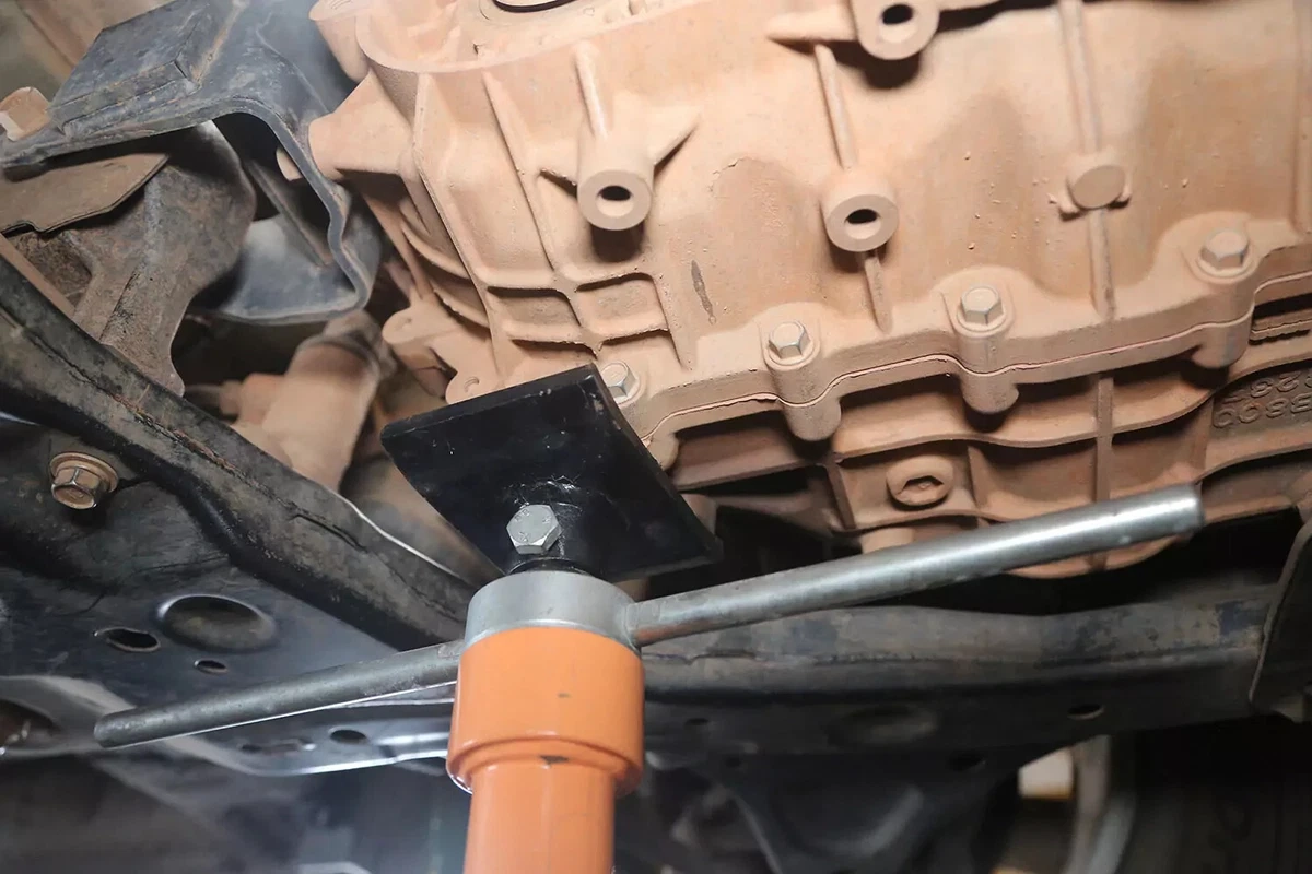 ကျွန်ုပ်တို့၏သရုပ်ပြယာဉ်အတွက်၊ mount တွင် subframe ပေါ်တွင် bolts သုံးခုနှင့် transmission သို့ bolt တစ်ခုရှိသည်။ နောက်ထပ် bolts လေးခုသည် ဂီယာချိတ်တွင် ဂီယာချိတ်ကို ချိတ်ဆက်ပါ။ ယာဉ်အများစုတွင်၊ ၎င်းတို့ကိုဖယ်ရှားရန်မလိုအပ်ပါ။