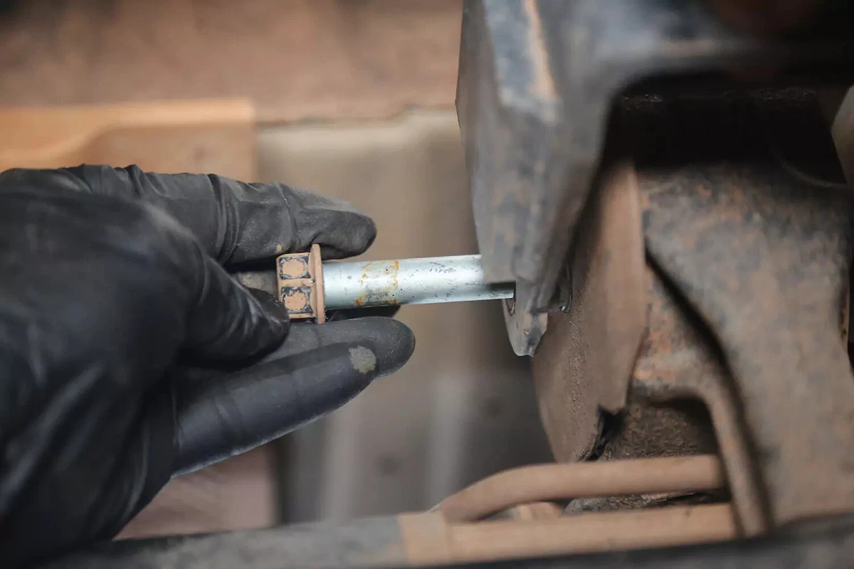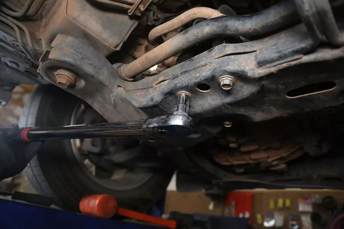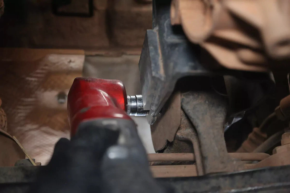 ကျွန်ုပ်တို့၏သရုပ်ပြယာဉ်တွင် တစ်ဖက်နှင့်တစ်ဖက်ရှိ ချောင်းဆိုးကြိုးကို အသုံးပြု၍ ဖြုတ်ထားသော ကြက်ခြေခတ်ဘောင်တစ်ခုရှိသည်။ တင်းကျပ်သော ရပ်ကွက်များတွင် ဤအရာများကို ဖယ်ရှားရန် ခက်ခဲနိုင်သည်။ လိုအပ်သော leverage ကိုရရှိရန် breaker bar၊ impact wrench သို့မဟုတ် cheater bar ကိုသုံးပါ။